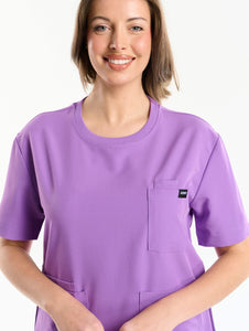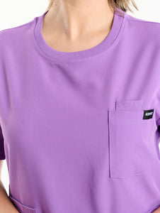 With a relaxed, unstructured back, drop-shoulder sleeves, and a high-coverage neckline, The Crew Neck Scrub Top delivers a roomy, comfortable fit