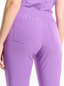 The Jogger Scrubs are a slim fit tapered to a ribbed ankle cuff designed to be worn above the shoe. The ribbed finish ensures durability and prevents the ankle from stretching out or losing its shape over time.